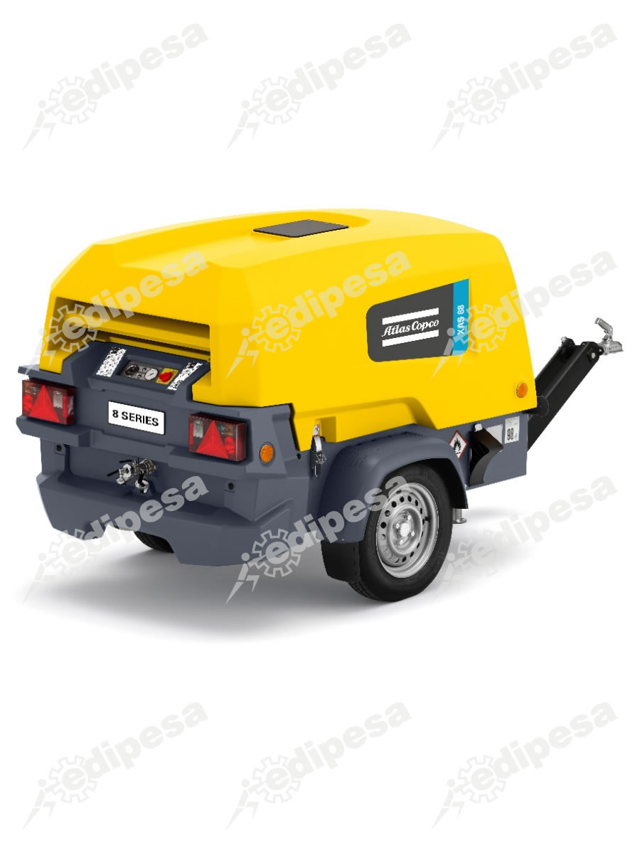 La nueva gama de compresores de la Serie 8 es el resultado de más de una década de desarrollo continuo. Ahora, y por primera vez, es posible remolcarlos con un turismo normal sin necesidad de permisos de conducir especiales. Además, tiene capacidad para producir hasta 5 m3/min de aire por minuto y presenta un gran depósito de combustible, un enfriador posterior y un generador incorporados en una carrocería compacta y ligera.