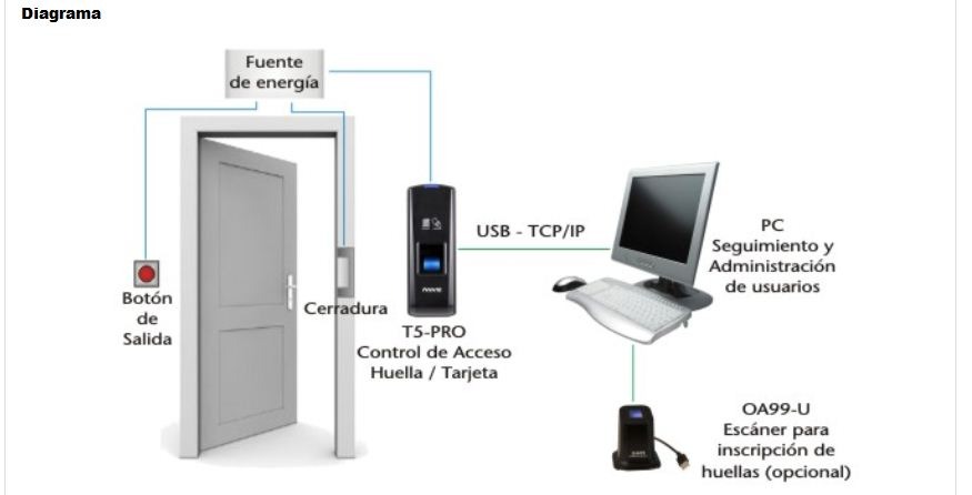 T5S tiene salida RS485 estándar para conectar con producción de control ANVIZ todo acceso a un sistema de control de acceso de tipo disperso. T5S puede actualizar fácilmente los lectores de tarjetas existentes para mayor nivel de seguridad de la huella digital y tarjeta