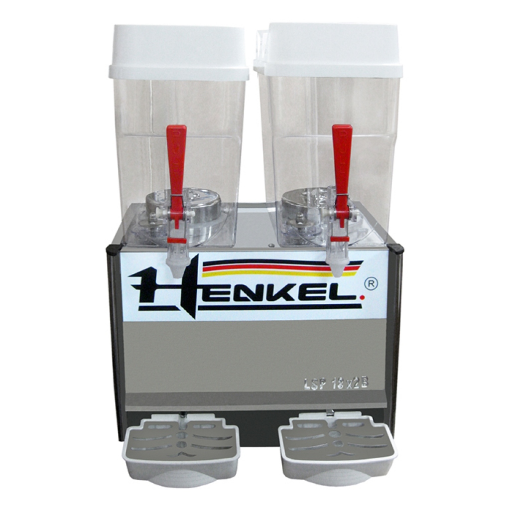 La máquina Refresquera de jugos marca HENKEL, es un equipo de tecnología americana, de dos tolvas con capacidad de 18 litros en cada una, teniendo una capacidad de 180 vasos de refresco. Es un equipo ecológico ya que utiliza gas refrigerante R134a inofensivo a la capa de ozono, esto permite que la refresquera sea mas eficiente, tenga mayor duración y ayude en el bajo consumo de energía.