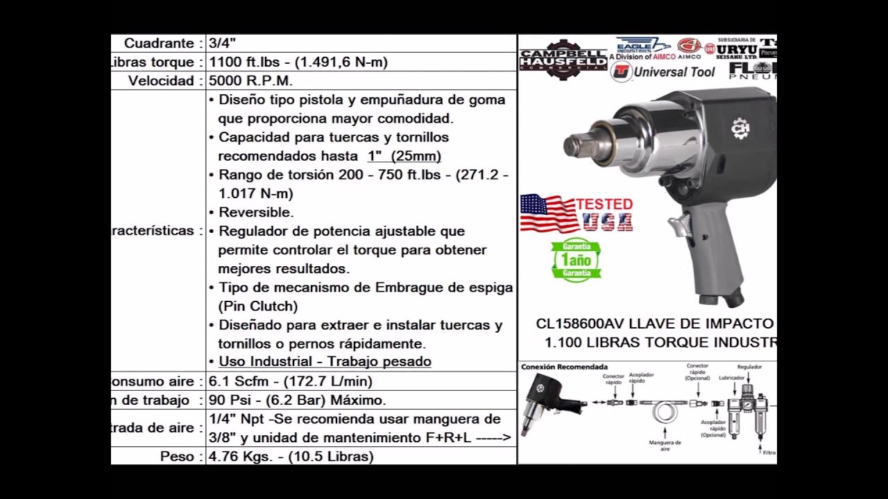Llave de Impacto CAMPBELL HAUSFELD CL158600AV 3/4 pulg
