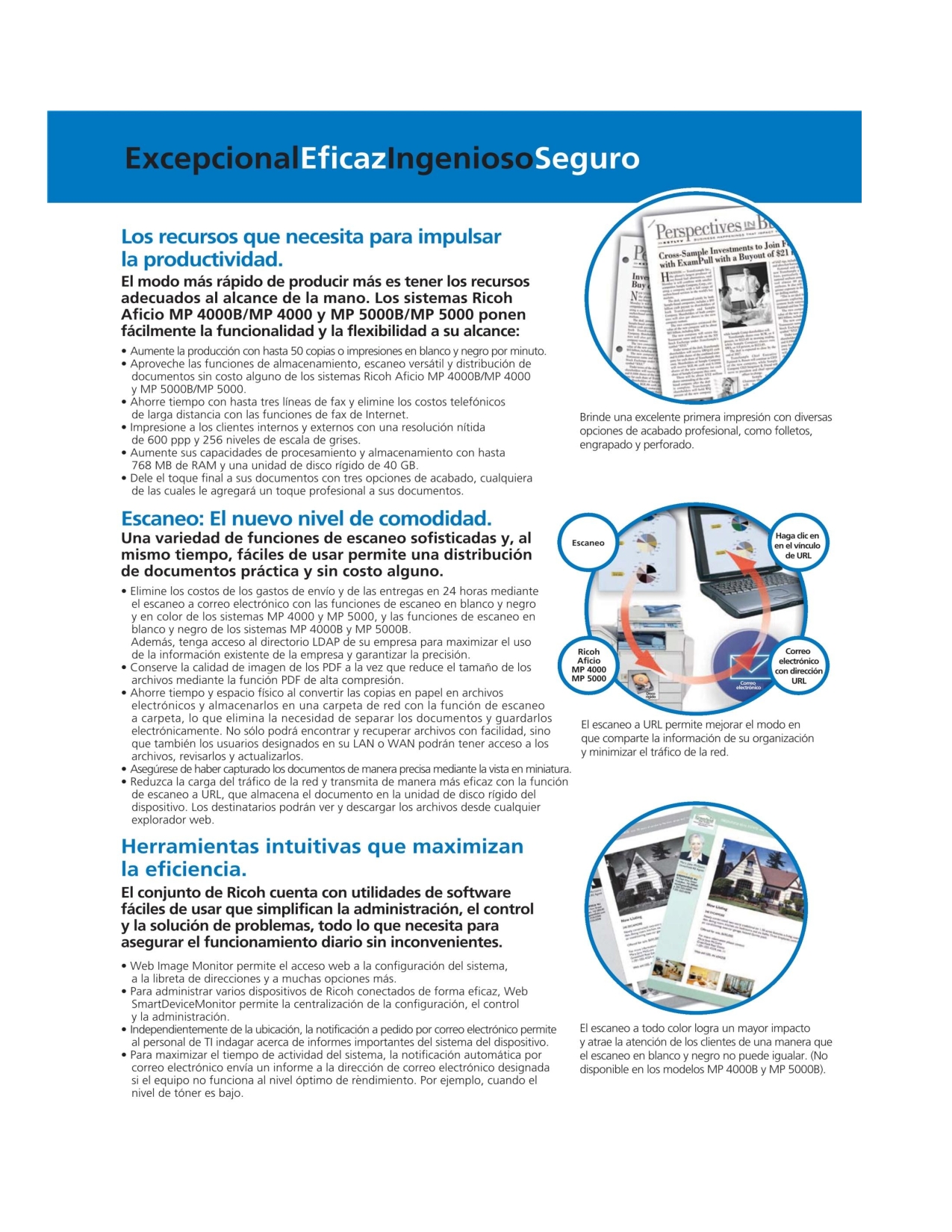 Compatibilidad con formatos de archivos comunes (PDF, TIFF y JPEG).
