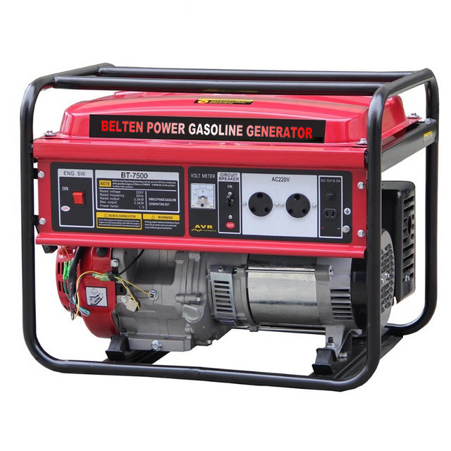 Generador de 6500 VA provisto de motor GX 390, con tecnología OHV de 4 tiempos, conocido por su tecnología de baja emisión de gases.