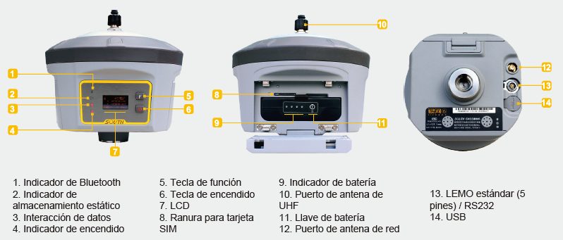 Estática levantamiento GNSS | Horizontal: 2,5mm + 0,5 ppm Vertical: 5mm + 0,5 ppm |
