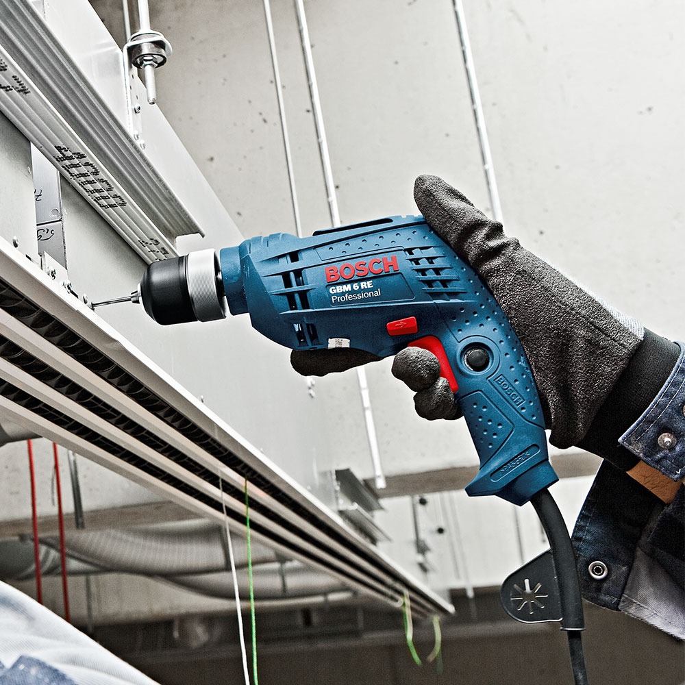 El GBM 6 RE Professional es un taladro muy preciso con cable de una velocidad. Su fiable motor de 350 W y gran velocidad son perfectos para taladrar diámetros pequeños. Este taladro ligero y compacto es muy cómodo de manejar, especialmente al taladrar en serie. Asimismo, este husillo de perforación está fijado en los cojinetes para garantizar un funcionamiento estable y taladrar con gran precisión.