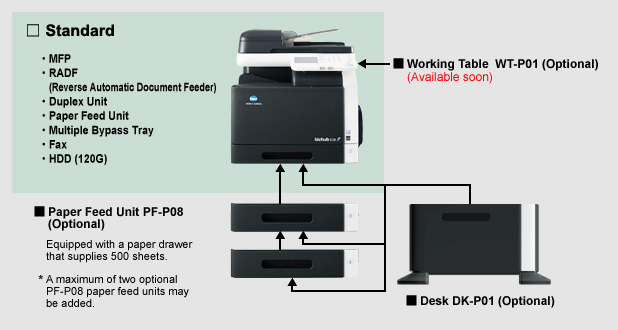 flexibilidad. La competente capacidad de papel de las bizhub C35 y C35P incluye papel grueso de hasta 210 gr. que incluso se puede usar a