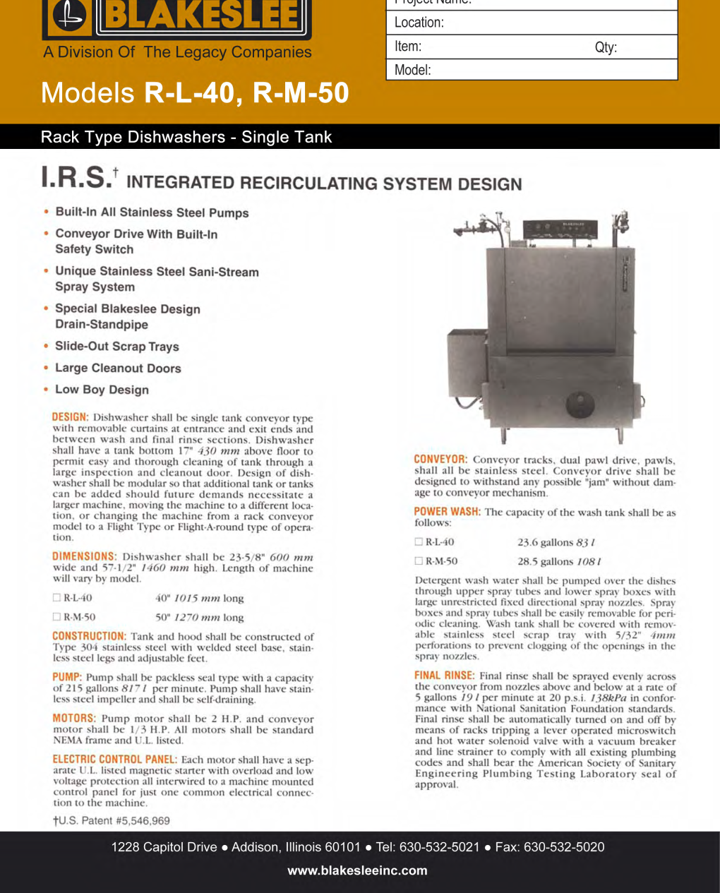 Lavaplatos, tipo transportador de bastidor, tanque individual de 40 ", 198 bastidores por hora, capacidad del tanque de lavado de 23.6 galones, con termostato incorporado, llenado automático, control de nivel de líquido, gabinete de control montado en la parte superior, interruptor de seguridad de la puerta, economizador de enjuague final, térmico Protección de sobrecarga para cada motor, cámara de calor protectora, bomba de lavado de acero inoxidable, paneles frontales, marco, patas y pies, calefacción eléctrica del tanque de 20 kw