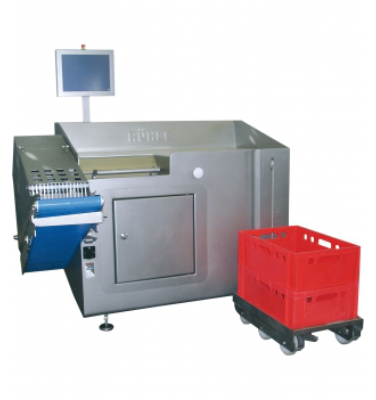 Por primera vez, un carro de por ejemplo 5 eurocajas se puede insertar en la máquina de corte y que se elevan automáticamente hasta la altura de trabajo. Con una caja vacía, pulsar un botón es todo lo que se necesita para mover el cuadro siguiente en su posición. Esto ahorra mucho tiempo y esfuerzo. Esto funciona con casi todos los recipientes actuales de procesamiento.