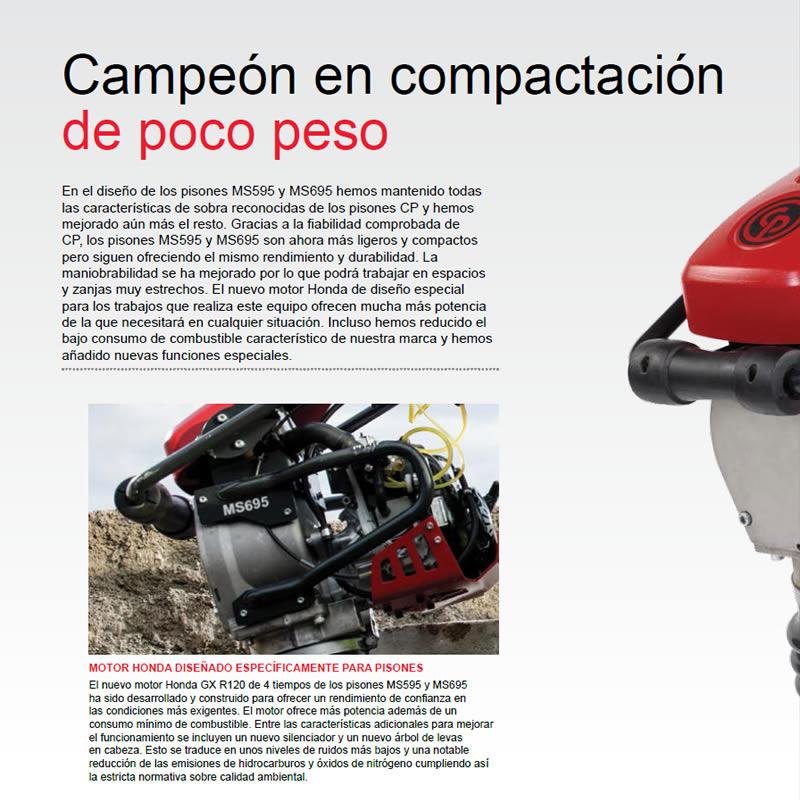 Además del rendimiento confiable, los pisones Chicago Pneumatic también le ahorran tiempo y dinero a través de un fácil mantenimiento y bajo consumo de combustible.