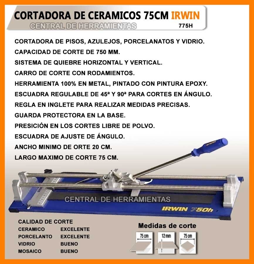 Cortadora de Ceramica y Porcelanato IRWIN 775H 75cm 20mm