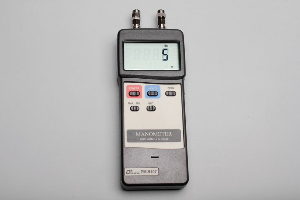 * Entrada dual y diferencial, 7000 mbar (7 bar) rango máximo. El sensor está incorporado dentro de la carcasa. Apagado automático para el ahorro de batería. Botón de ajuste a cero en el panel de control, fácil compensación a cero. Circuito microprocesador, la máxima exactitud posible. Pantalla grande con ajuste de contraste para una mejor visión en distintos ángulos. Graba las lecturas máximas y mínimas con rellamado. El asimiento de los datos funciona para almacenar el valor deseado en la demostración. Interfase serial 232 para PC.