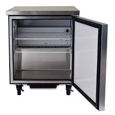El gabinete está forrado con aislamiento de poliuretano para mantener el aire frío en el interior. Un sistema de tubo capilar utiliza refrigerante de hidrocarburo R290 para mantener una temperatura promedio de -10 grados Fahrenheit. Se distribuye una cantidad uniforme de aire por todo el gabinete con los motores del condensador y del ventilador del evaporador. El sistema de refrigeración en el congelador bajo mesada True TUC-27F-HC es accesible desde la parte posterior.
