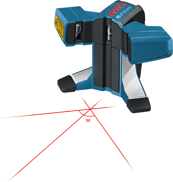 Además de las dos líneas láser en ángulo de 90°, proyecta una tercera línea a 45° para la alineación y colocación rápidas y precisas de azulejos de pared y de suelo