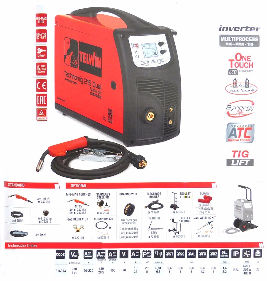 Soldadora TELWIN Technomig 215 Dual - 3 en 1