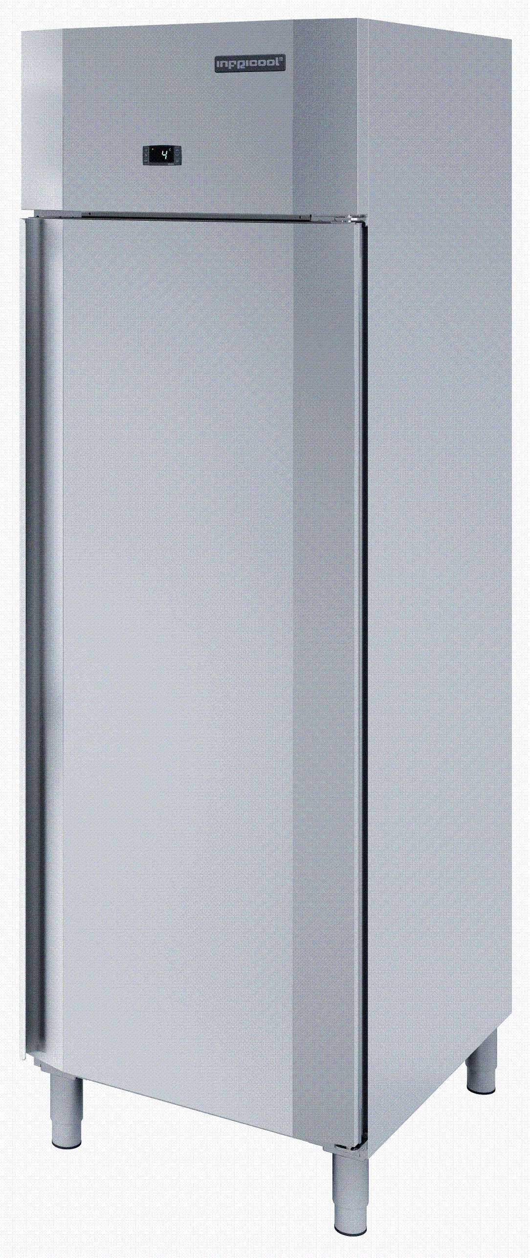Armario congelador de una puerta, volumen 600 l., Modo de temperatura de operación hasta -18 ° C, grosor de aislamiento - 60 mm, descongelación automática, cámara con esquinas alisadas, completo con 2 estantes de tamaño GN 2/1, ejecución interna y externa - acero inoxidable. acero
