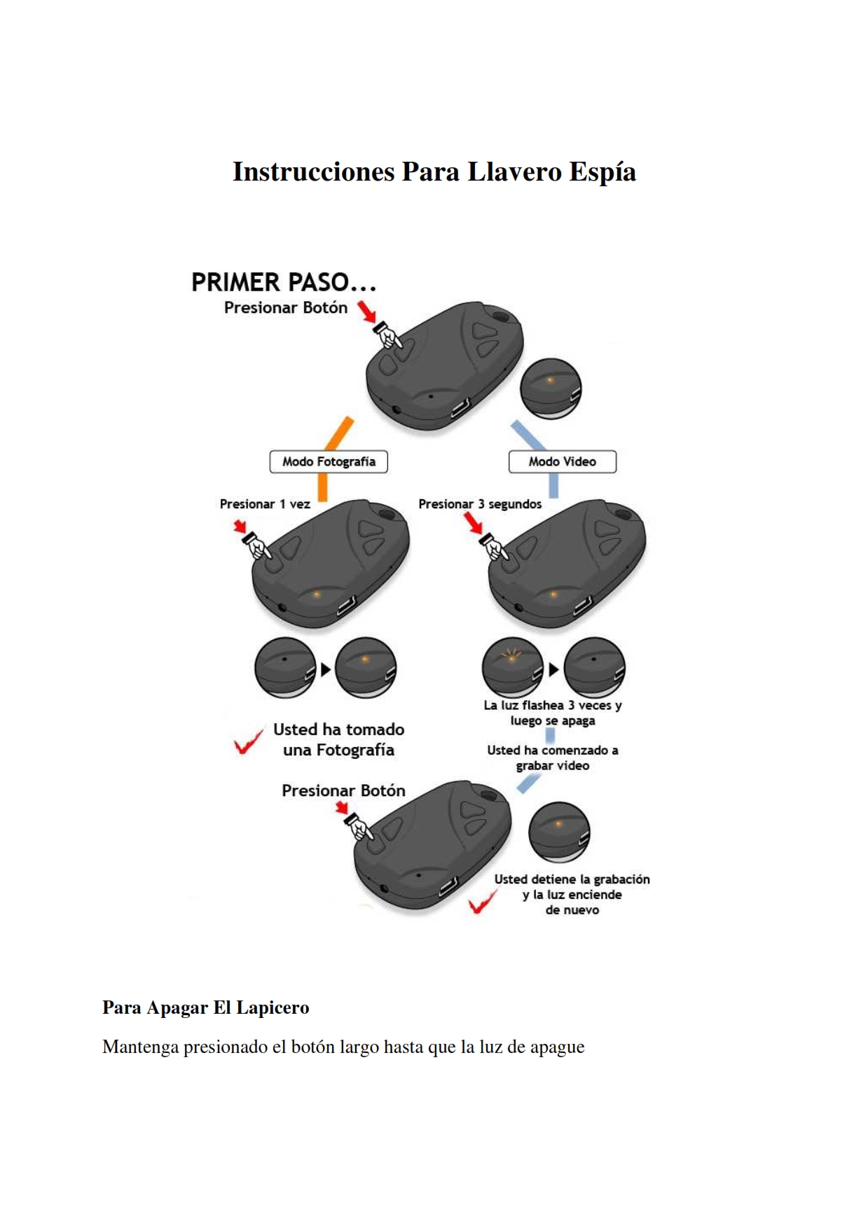 Manual de instrucciones del llavero espia