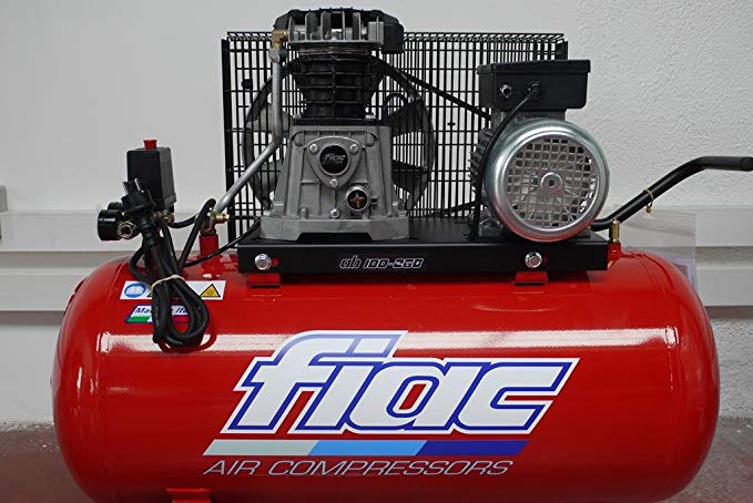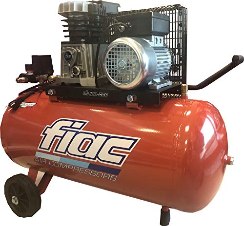 Compresor de aire profesional FIAC HP 100-268 M 2 de la serie AB, modelo con correa de bomba de tanque horizontal, pistón y distribución, estamos hablando de un producto diseñado y producido enteramente en Italia el Fiac Spa de Bolonia, primera empresa europea.