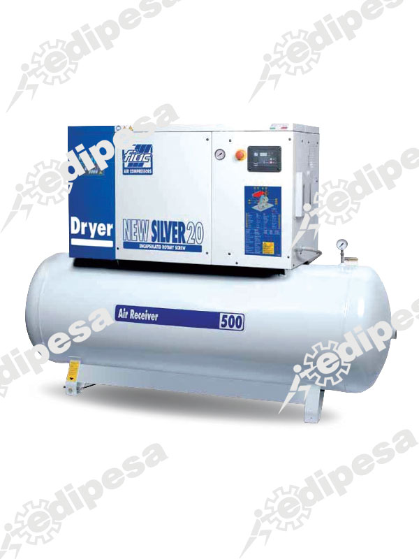 De FIAC Investigación y Desarrollo, una nueva gama de compresores de tornillo de bajo ruido llamados New Silver nace para satisfacer las demandas de los pequeños generadores de aire comprimido con baja potencia de 5,5 a 50 HP: simple, económico, pero tecnológicamente avanzados. New Silver es la solución ideal para clientes que necesitan una estación de aire completo que es fácil de usar, conveniente para la operación continua y constante en el tiempo