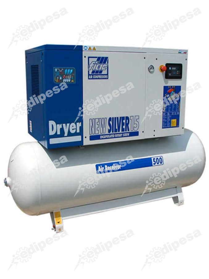 De FIAC Investigación y Desarrollo, una nueva gama de compresores de tornillo de bajo ruido llamados New Silver nace para satisfacer las demandas de los pequeños generadores de aire comprimido con baja potencia de 5,5 a 50 HP: simple, económico, pero tecnológicamente avanzados. New Silver es la solución ideal para clientes que necesitan una estación de aire completo que es fácil de usar, conveniente para la operación continua y constante en el tiempo