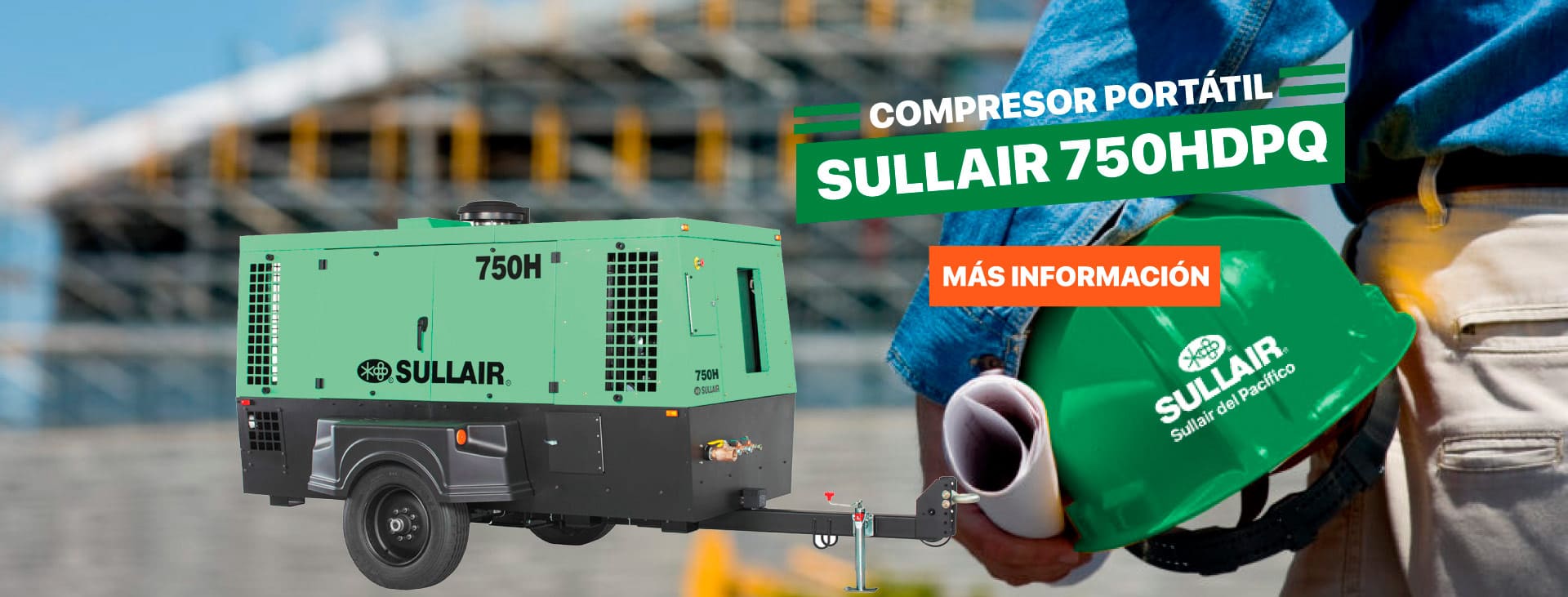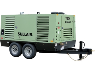 El compresor de aire portátil de tornillo rotativo Sullair 750H entrega 750 cfm a 150 psig o 21.2 m 3 / min a 10 bar. La unidad está diseñada para brindar confiabilidad y total accesibilidad con un dosel de cubierta para un fácil mantenimiento. Accionado por un motor Caterpillar que cumple con las normas Tier 3. Las opciones de montaje son eje tándem o rueda de carreta orientable. La caja está hecha de chapa metálica Galvanneal con recubrimiento en polvo duradero con tapas de material compuesto. Otras características incluyen la suspensión de goma de torsión independiente, los engrasadores de los cojinetes de las ruedas y un panel de instrumentos que se puede cerrar con llave. Los compresores cuentan con una válvula de entrada neumática y un control de capacidad de 0 a 100%.
