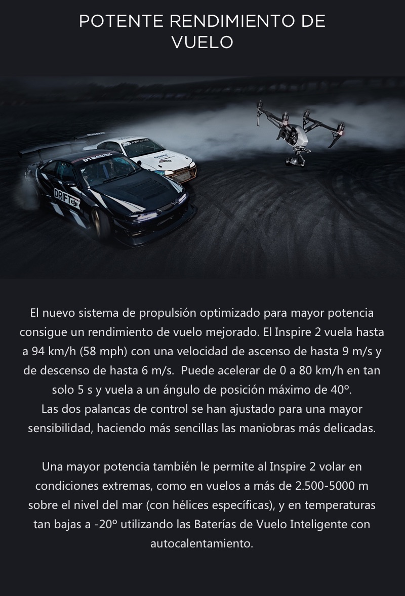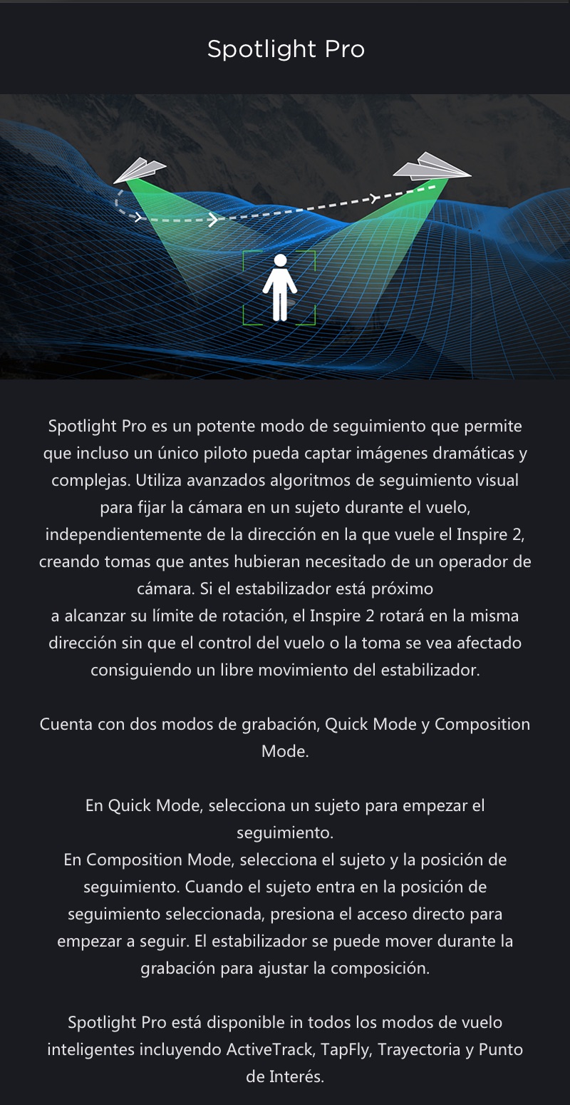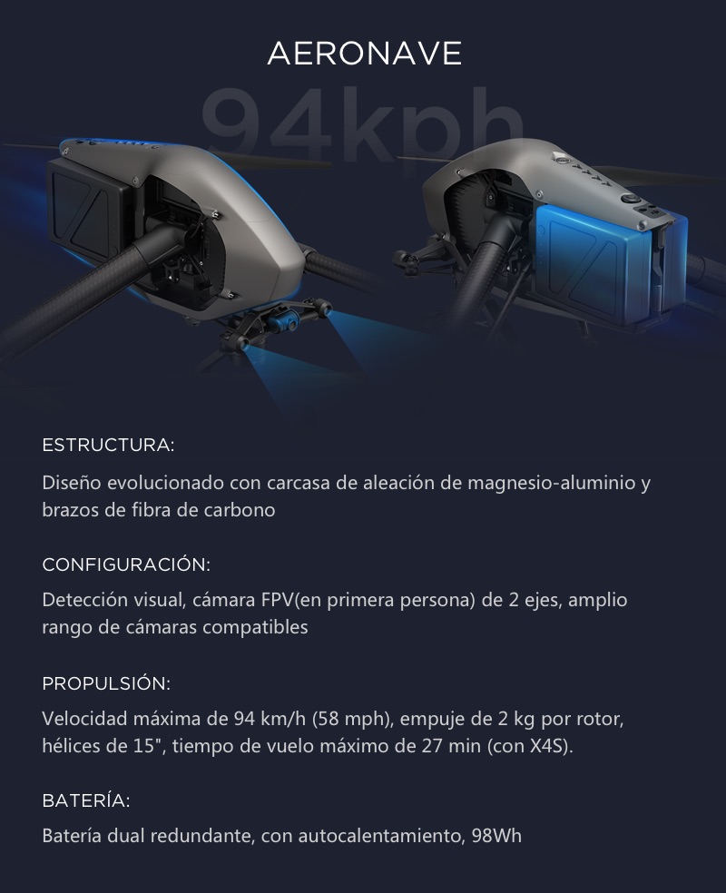 RANGO DE PRECISIÓN DE VUELO ESTACIONARIO | Vertical: ±0.1 m (con posicionamiento visual) ±0.5 m (con posicionamiento por GPS) Horizontal: ±0.3 m (con posicionamiento visual) ±1.5 m (con posicionamiento por GPS) |