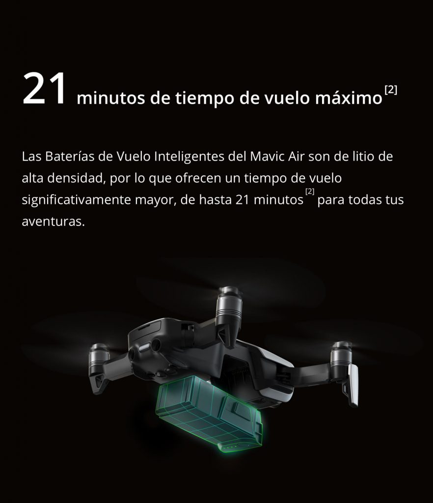 Máximo tiempo de vuelo de hasta 21 minutos y hasta 4 Km de distancia operativa
