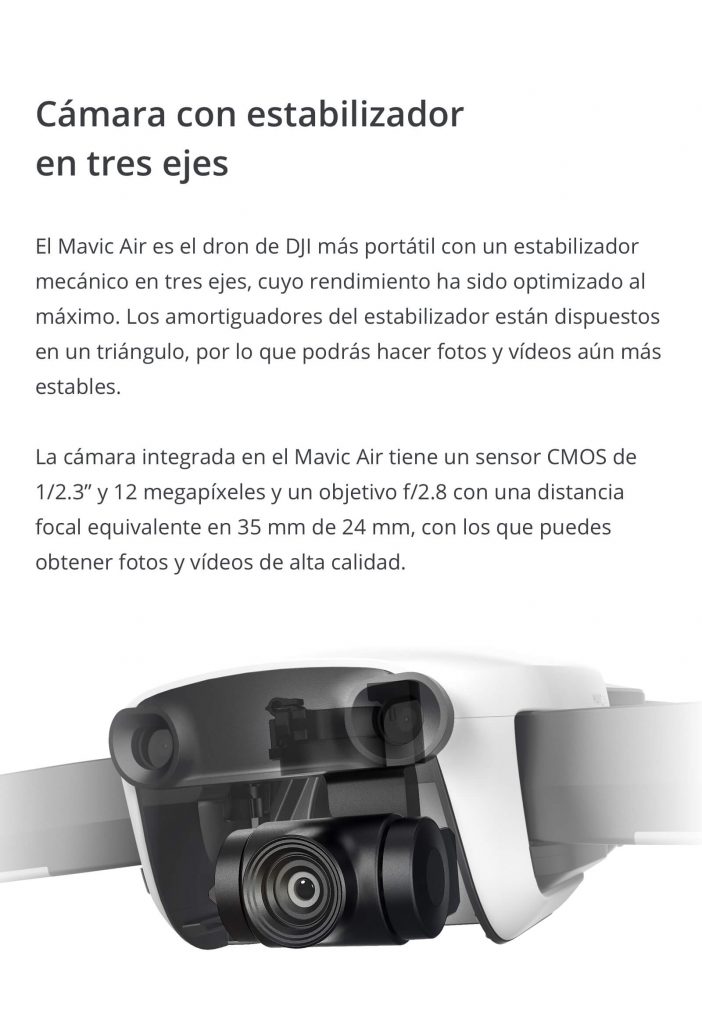 El Mavic Air es el drone de DJi estabilizado de 3 ejes mecánicos más portatil de la marca.