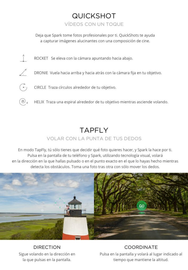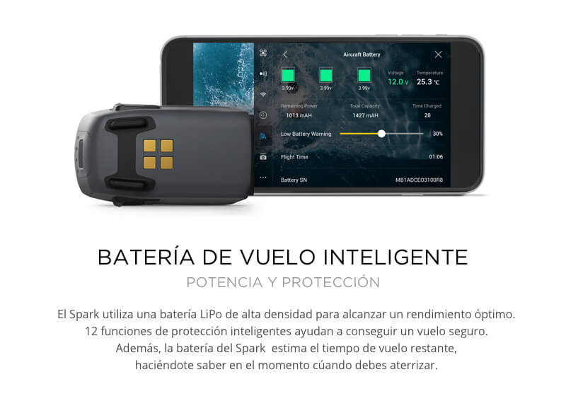 Ultra-portátil y fácil de usar, el dron de cámara DJI Spark presenta todas las tecnologías exclusivas de DJI, incluyendo Gesture Control, ActiveTrack y Obstacle Avoidance. Simplemente use sus movimientos de la palma de la mano o la aplicación DJI GO 4 en su iPhone o iPad para guiar su movimiento. Con Chispa en la palma de tu mano, puedes capturar dronies y paisajes cada vez que llegue el momento.