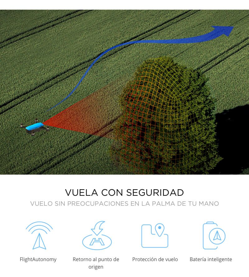 RANGO DE PRECISIÓN EN VUELO ESTACIONARIO | “Vertical: +/- 0.1 m (si el Posicionamiento Visual está activado) o +/- 0.5 m” Horizontal: +/- 0.3 m (si el Posicionamiento Visual está activado) o +/- 1.5 m |