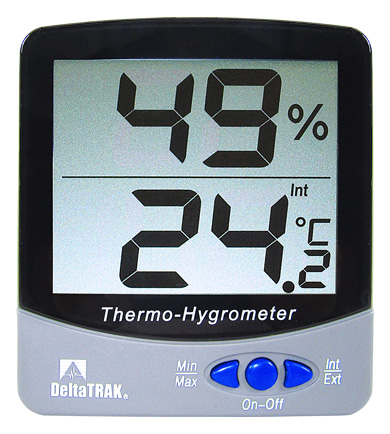 El Termohigrómetro digital Deltatrack 13307 es una valiosa herramienta de mantenimiento preventivo y de aseguramiento de la calidad para el control de la temperatura y lecturas de humedad relativa en invernaderos, salas de engorde, incubadoras, salas limpias, salas de proceso y laboratorios químicos. Cuenta con una pantalla de LCD, interruptor para °F / °C y un registro de lecturas mínimas/´máximas.
