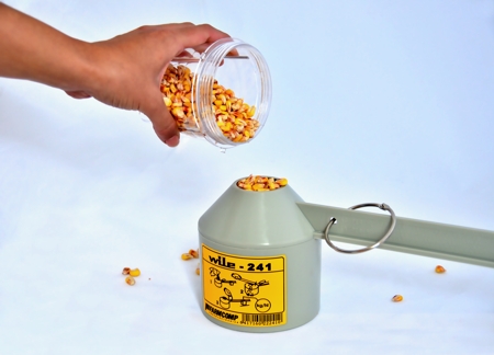 El funcionamiento y el modo de uso es muy simple. Es el equipo más adecuado para los agricultores y cooperativas que desean medir directamente a pie de cosecha o en recepción el peso específico aproximado de sus lotes de semillas.