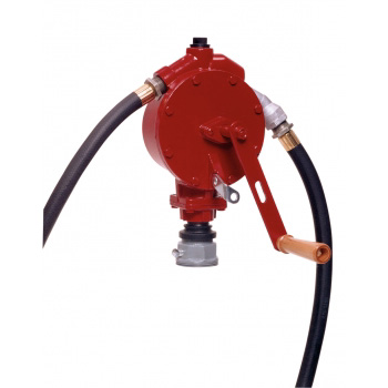 Bomba manual giratoria de transferencia de combustible de aluminio fundido resistente de hasta 10 galones por 100 revoluciones con válvula de control y filtro incorporados. Diseñada para gasolina, diésel, biodiésel de hasta B20, E-15 y queroseno. Includes a 20- 34.5 telescoping steel suction pipe, nozzle spout and 8' hose. Homologado por UL. Dos años de garantía. Hecho en los EE. UU.