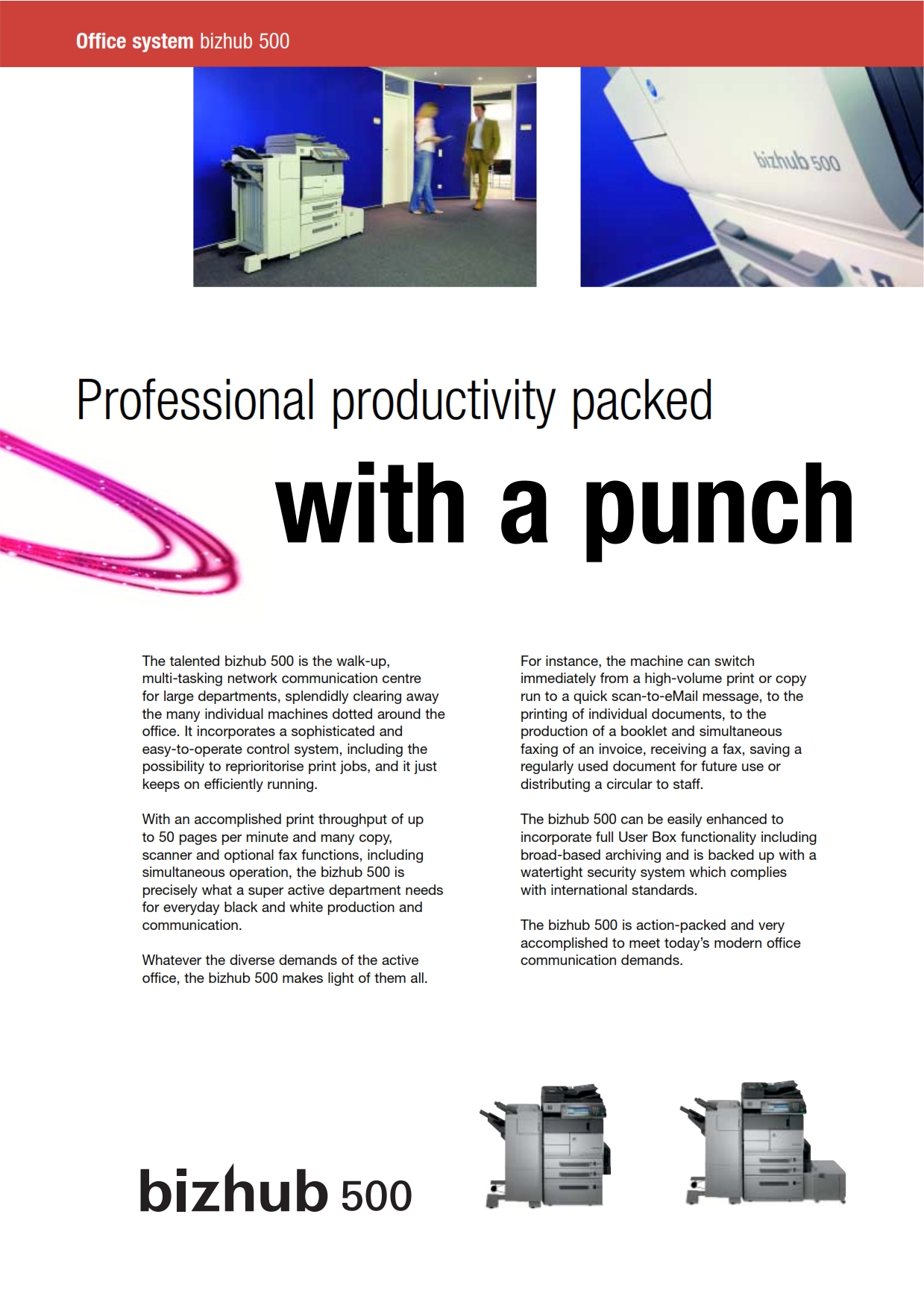 La Konica Minolta bizhub 500 es un potente flexibles B & W copiadora rápida.