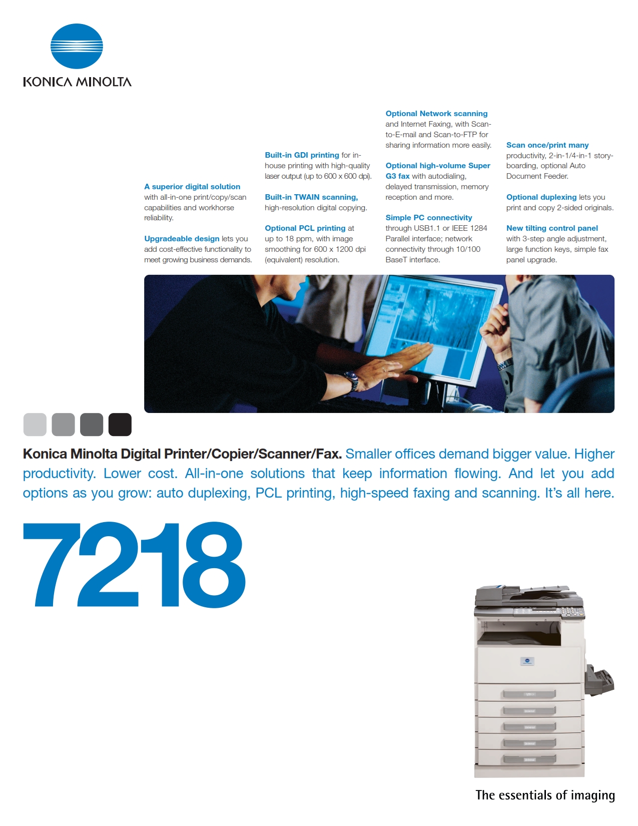 Oficinas Konica Minolta 7218 se beneficiarán de la Konica Minolta bizhub todo-en-uno de 7218. La bizhub 7218.