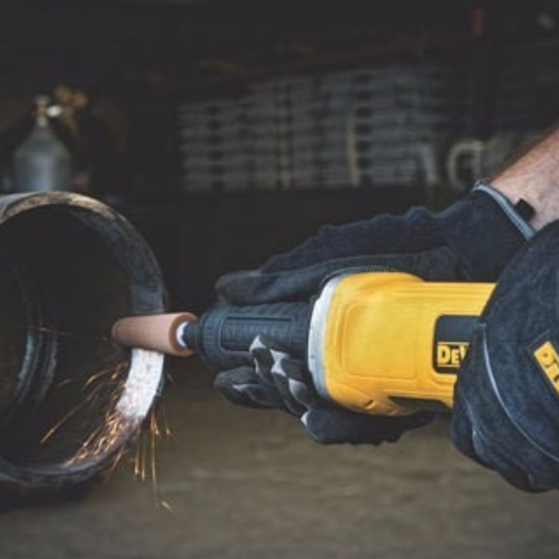 Potente motor que permite un máximo rendimiento en aplicaciones exigentes de cuerpo larga y estrecho con empuñadura recubierta en goma para mejor acceso, control y comodidad. Diseño ergonómico que facilita el uso de la herramienta para el usuario. La capacidad de CA / CC funciona con máquinas de soldadura y generadores para aumentar la productividad y versatilidad. Portaherramienta antibloqueo. Facilidad de reparación, diseño de un solo tornillo. Escobillas de desconexión automática para mayor vida útil del motor.