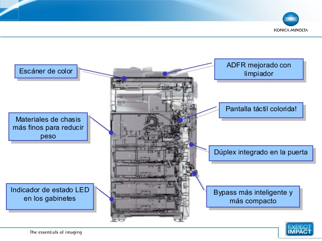 Konica Minolta señala la rápida capacidad de identificar, acceder, compartir, y utilizar recursos de información. El resultado es un gran avance evolutivo en eficiencia de flujo de trabajo racionalizado la nueva impresora multifuncional a color bizhub C360 de alta performance, con su diseño universal de fácil uso y su inconfundible estilo de línea blanca. También mejoró la comunicación y la colaboración durante el almacenamiento, la clasificación, la búsqueda y la transmisión de datos. Características tales como la compatibilidad con los teléfonos móviles Bluetooth y la unidad de memoria USB nos han permitido usar las bizhub de las sucursales sin tener que llevar nuestras PC portátiles. Gracias a bizhub, hemos mejorado nuestro uso compartido de la información total y la eficiencia del flujo de trabajo. Conecte, colabore y controle de nuevo la eficiencia con bizhub, y alcance la solución ideal para sus documentos.