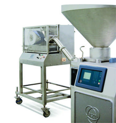 El sistema ARP 125 produce hamburguesas circular de tipo hecho a mano. Una guillotina separa las porciones de la embutidora Risco. Los porciones par una cinta transportadora son aplastados suavemente por un sistema de rodillos que crea el efecto de la producción manual. Espesor ajustable en de 5 a 20 mm. El producto final se transmite por una cinta transportadora para el proceso de envasado. Como una opción se puede pner en automatico la papel sobre la base del producto. El sistema ARP 125 garantize hamburguesas de calidad y lo cual encuentra las nuevas tendencias del mercado.
