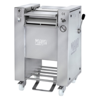 La desveladora manual tipo EASY está la solución ideal para las carnicerías artesanales. Las piezas de cerdo, ternera, vaca, caza y pollo están desveladas precisamente y con resultado perfecto, así como la carne especial como, avestruz ó canguru. Esta máquina ofrece una relación ideal entre su precio y su rendimiento. Permite aumentar el valor de la carne. Limpieza del rodillo dentado mediante el sistema de limpieza de 3 rodillos patentado por MAJA (sobre pedido también con aire comprimido - modelo EASY/1).