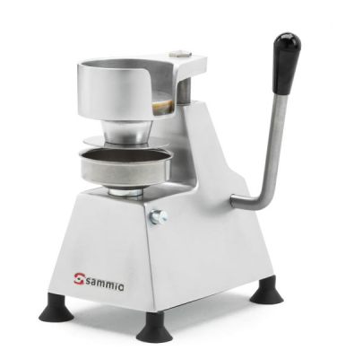 Moldeadora de hamburguesa de diseño limpio y sencilla de utilizar y mantener, permite moldear las hamburguesas rápida e higiénicamente con el contenedor de celofán protector incorporado.