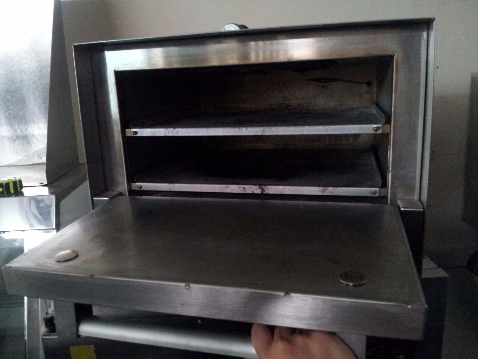 Horno eléctrico, encimera, (1) compartimiento del horno, (1) plataforma de cerámica extraíble de 17-3 / 4 "x 17-3 / 4", control termostático, rango de temperatura de 300 ° F - 550 ° F, temporizador de 60 minutos, aluminizado revestimiento del horno de acero, parte superior, laterales y revestimiento de acero inoxidable, cULus, NSF