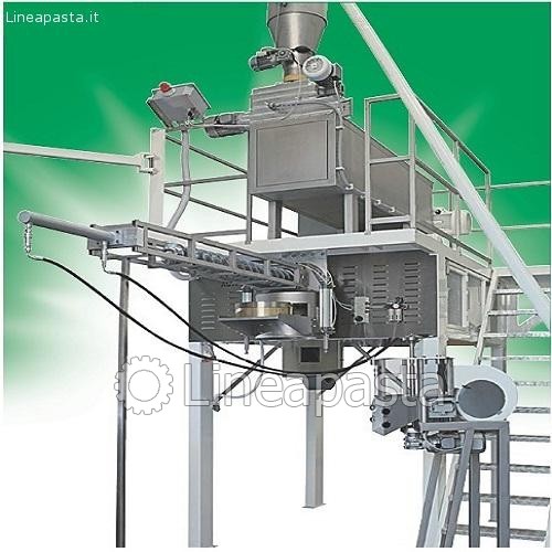 Es una maquina completamente automática que puede trabajar cualquier tipo de harina o sémola porque la premezcla de turbina dona a la masa una perfecta humidificación. La elaboración de la masa se hace al vacío y la extrusión se realiza con una cóclea especial muy pulida, control electrónico de la presión y de la temperatura.