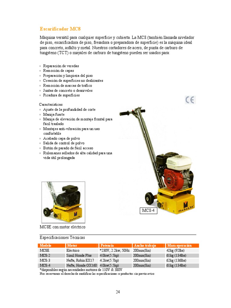 La escarificadora MC8 es ideal para trabajar sobre superficies de hormigón, asfalto y acero.