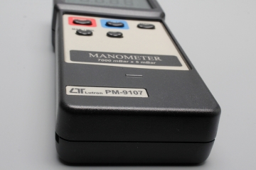* Entrada dual y diferencial, 7000 mbar (7 bar) rango máximo. El sensor está incorporado dentro de la carcasa. Apagado automático para el ahorro de batería. Botón de ajuste a cero en el panel de control, fácil compensación a cero. Circuito microprocesador, la máxima exactitud posible. Pantalla grande con ajuste de contraste para una mejor visión en distintos ángulos. Graba las lecturas máximas y mínimas con rellamado. El asimiento de los datos funciona para almacenar el valor deseado en la demostración. Interfase serial 232 para PC.