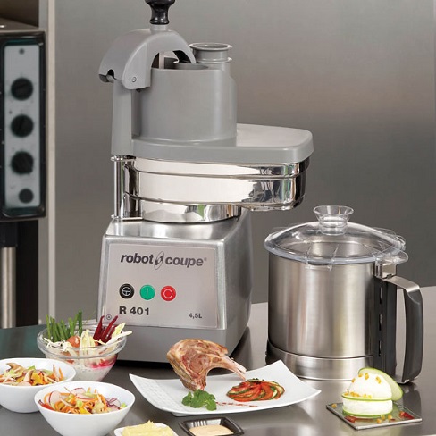 Preparar manualmente los ingredientes toma mucho tiempo y representa un riesgo para la seguridad, exponiendo a sus empleados a cuchillos afilados que pueden causar fácilmente lesiones. El procesador de alimentos combinado R401 de Robot Coupe elimina ambos problemas al ofrecerle opciones de preparación casi ilimitadas y al hacer ese trabajo de preparación en una fracción del tiempo que se necesita para realizar manualmente. ¡Y puesto que viene con una cabeza de alimentación continua y un tazón de fuente de la hornada, usted puede adaptarse fácilmente a cualquier tarea!