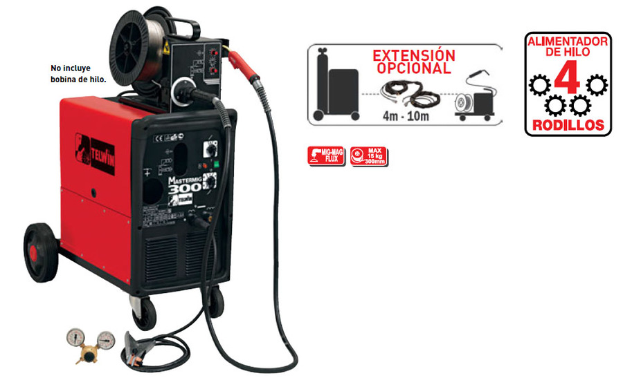 Soldadora de hilo MIG-MAG/FLUX/COBRESOLDADURA con alimentador de hilo desmontable, adecuada para el uso en ambiente industrial.